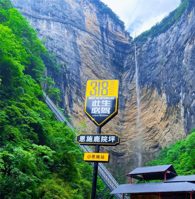 鹿院坪犹如一口碗,四周奇异陡峭的山峰悬崖,曲折的小溪从村头山间留下穿过村落掉入地缝,而另外一条小溪由山腰绝壁洞穴喷涌而出,形成了美丽的水帘洞瀑布,一泻而下成就了四级瀑布群,与小溪汇合经幽深的峡谷汇入云龙河。徒步42道拐出鹿院坪。