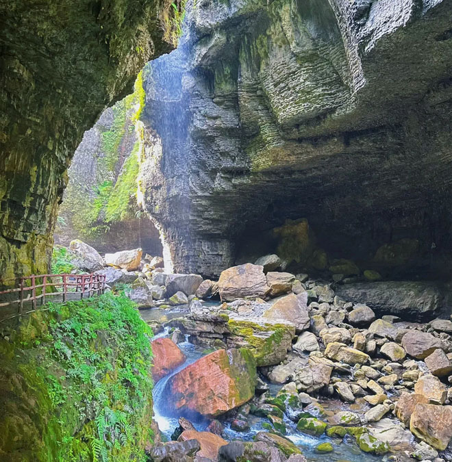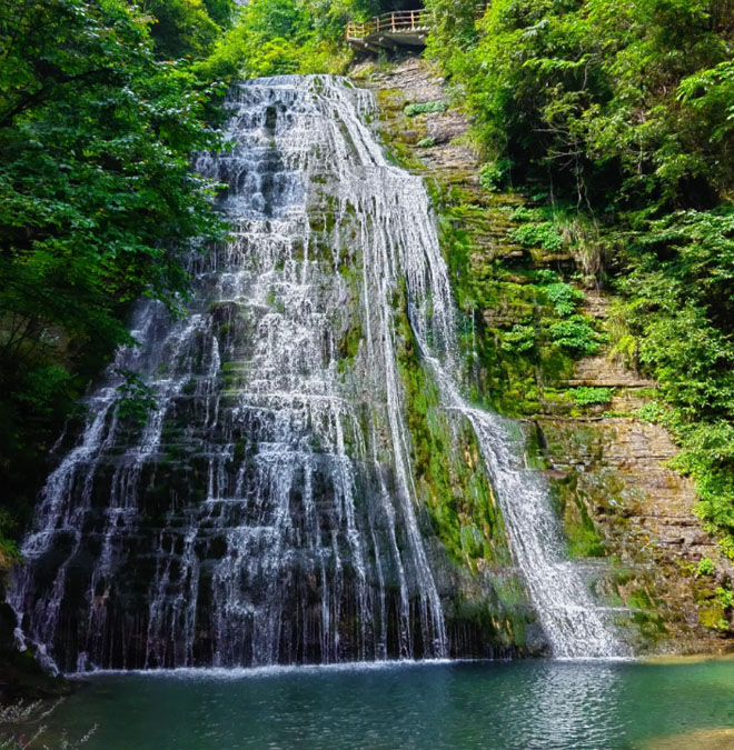 记得多做深呼吸哦!鹿苑坪让我们久居都市的肺得到清洗,让我们被城市压抑的心情得到释放!徒步参观地缝景观--【鹿饮潭】、【鹿嘻壁】等景点,再徒步鹿院坪---【水帘洞】,参观【瀑布群】(时间3小时)。